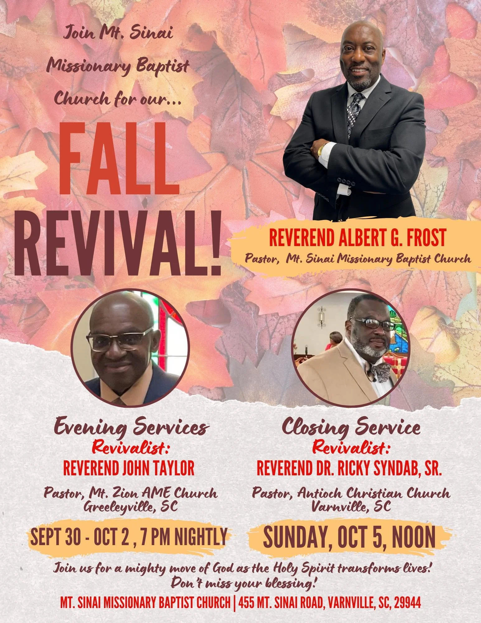 Mt. Sinai Missionary Baptist Church of Varnville SC is a body of Bible-believing Christians who worship and work to fulfill the Great Commission of Christ. Matthew 28: 19-20